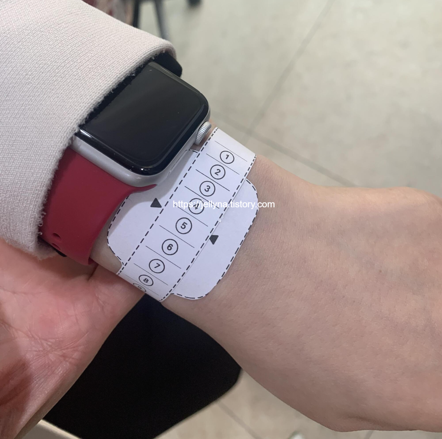 내가 고른 스트랩은 왜 때문에.. 손목 사이즈를 아래 사진처럼 인쇄물을 인쇄해서 재라고 했는지..