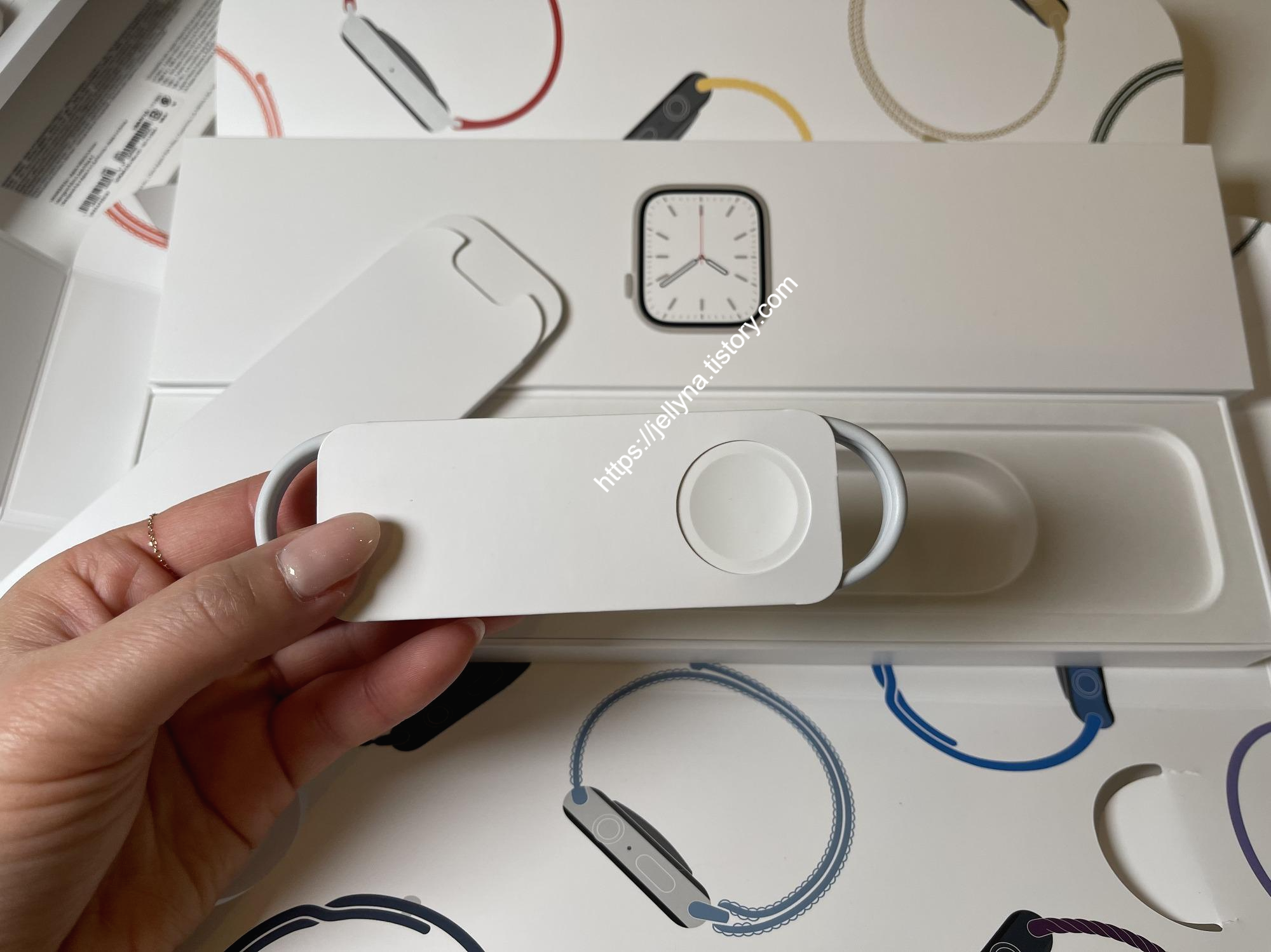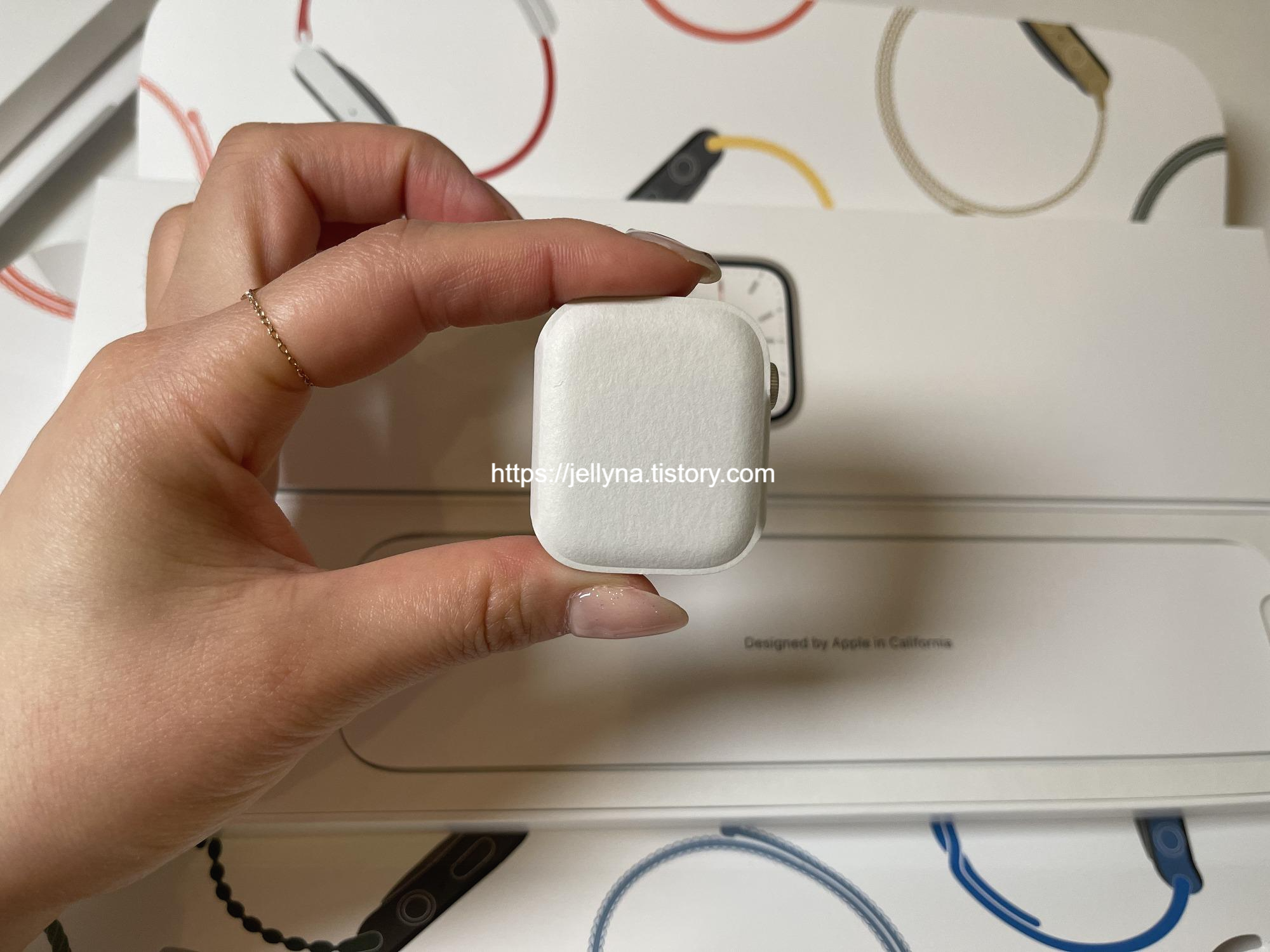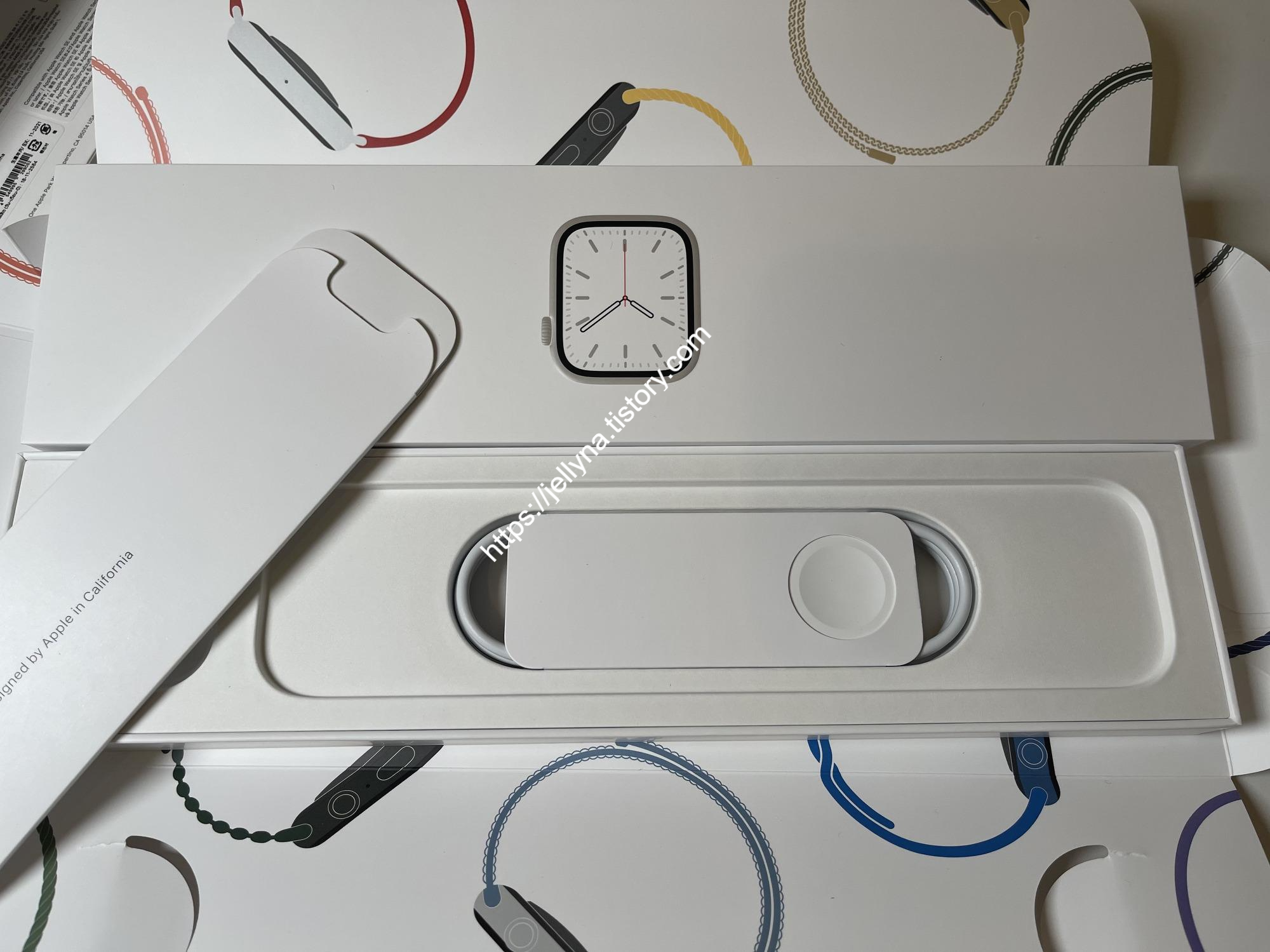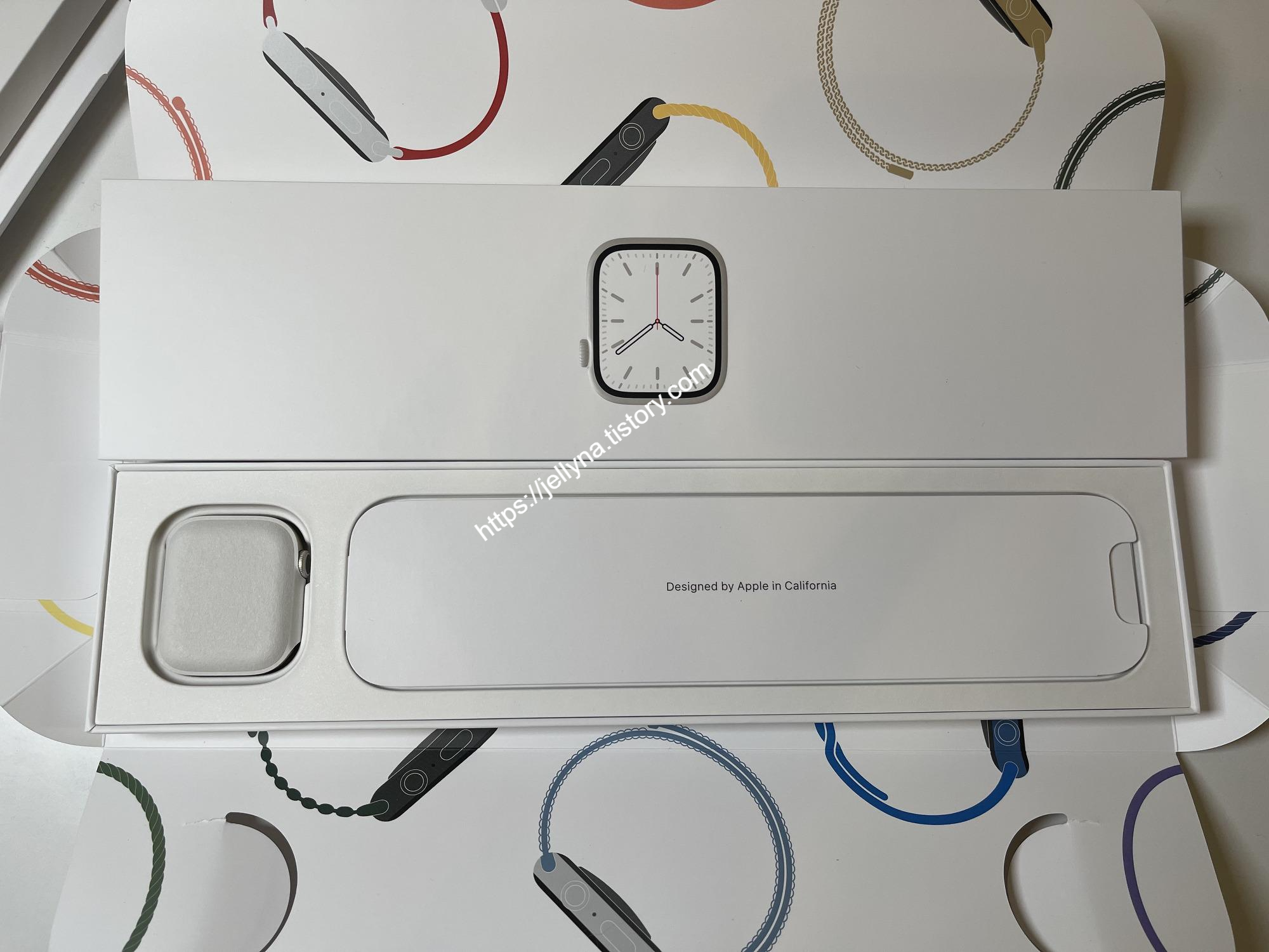 애플 워치 7의 박스를 열면 41mm의 아기자기함 뽐내는 본체가 들어있는데~