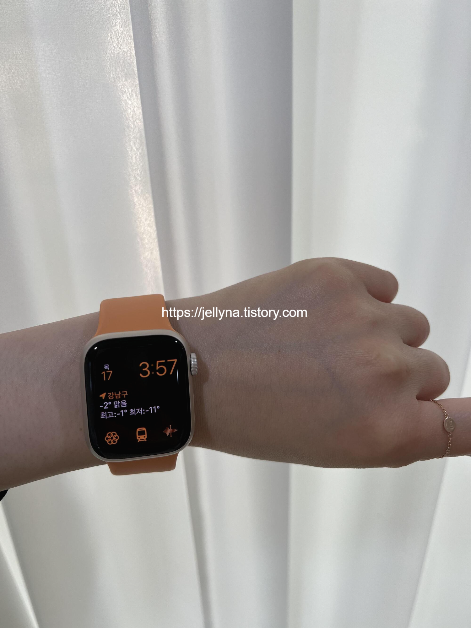 애플 워치 7 41mm 스타라이트 오렌지 스트랩이 아주 상콤하네요~