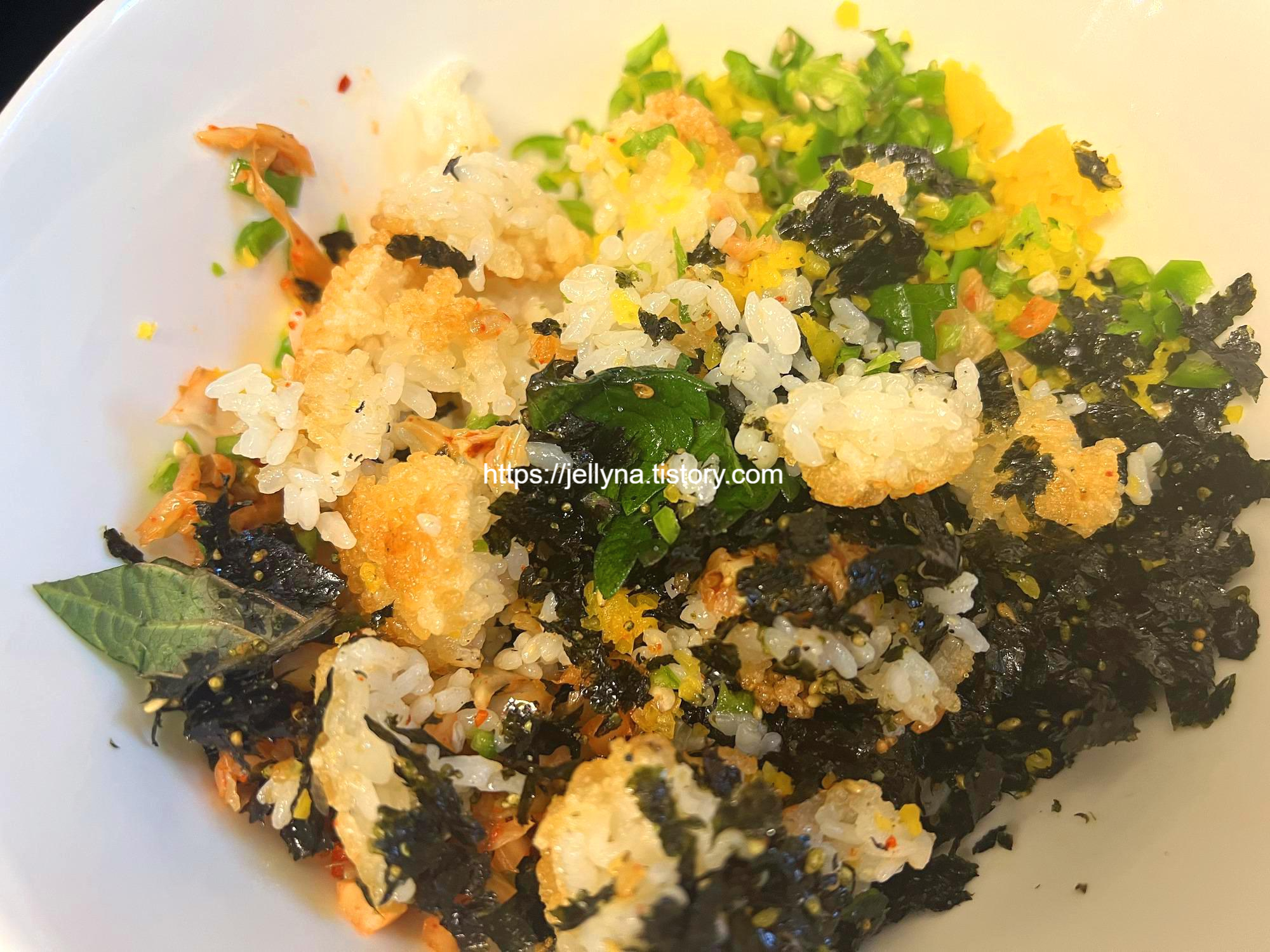 볶아줘도 되는 것 같지만, 일단 누룽지는 잘 구워져서 오기 때문에 따뜻할때 섞어주면 바로 먹을 수 있어요.